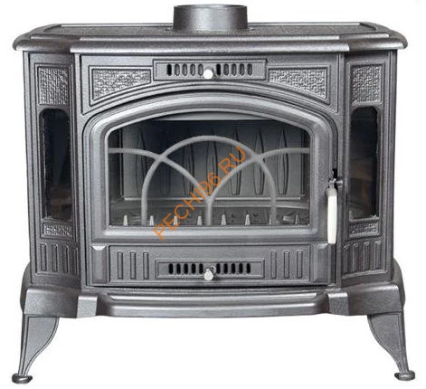 Еще одним плюсом является упрощенный монтаж чугунной печи для дачи, отсутствие дополнительного фундамента, а также многовариантное присоединение дымохода к конструкции печи – как вертикально, так и сзади. Чугунная печь оборудуется закрытой топкой, что предполагает абсолютное исключение опасности возникновения пожара, поскольку дверца закрывается герметично, а за процессом горения можно наблюдать через обширное стекло панорамного типа.