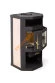 Панорамное огнеупорное стекло выдерживает высокие температуры и не искажает вида живописной игры пламени. Стильная удобная ручка делает процесс открывания дверцы простым и безопасным. В нижней части печи расположен отсек для хранения небольшого количества брёвен либо брикетов. Для лучшей подачи воздуха может быть использовано внешнее воздушное соединение, которое снабжает пламя достаточным количеством кислорода извне. Это особенно важно в хорошо изолированных загородных домах, так как воздух в помещении остается нетронутым и частого проветривания можно избежать.