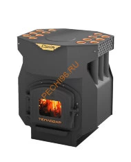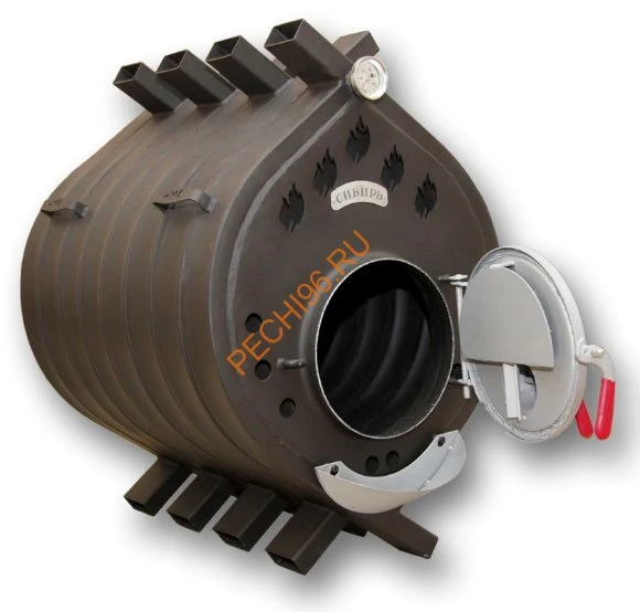 Печь воздухогрейная БВ «Сибирь» – это цельнометаллическая конструкция состоящая из многочисленных труб обеспечивает естественную конвекцию, благодаря чему происходит быстрое нагревание воздуха и его плавное распределение по всему объему помещения. Простым языком - теплый воздух поднимается наверх, а более холодный постоянно всасывается с пола. Каждая из труб, полностью прикасаясь к топке, успевает нагреть проходящий через нее воздушный поток до 60-150° C. Конструкция из стали покрытая жаропрочной краской. В основе корпуса печи заложена прямоугольная труба 80*40мм. Печь состоит из двух камер сгорания: нижней камеры – камеры газификации и верхней камеры – камеры дожигания газов. В передних трубах имеются инжекторы-дожигатели. Печь оборудована двумя регуляторами: на дверце (регулятор мощности) и на дымоходном патрубке сзади печи (регулятор-газификатор).