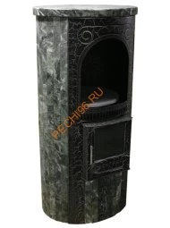 Печь укомплектована варочной поверхностью с одной конфоркой для приготовления пищи. Топочная камера состоит из чугунных плит. Дверца топки укомплектована термостойкой стеклокерамикой. Замок и уплотнительный шнур обеспечивают герметичное закрывание дверцы.
