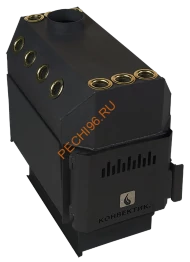 16. Наружные теплоотдающие поверхности печи, включая дверцу, охвачены кожухом-конвектором, который экранирует пожароопасное инфракрасное излучение, исходящее от них, в результате чего, создаются конвекционные потоки, динамично прогревающие отапливаемое помещение.