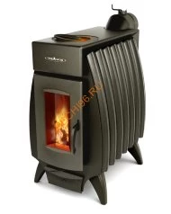 Отопительная печь длительного горения Прометей предназначена для отопления частных домов, дач, гаражей, теплиц, для приготовления и разогрева пищи. Печь относится к нагревательным устройствам конвекционного типа, работающим на твердом топливе (дрова). В печи предусмотрены два канала подачи вторичного воздуха: один на передней и один на задней стенке топки. Конструкция топки имеет трехходовую схему прохождения горючих газов, что позволяет получать максимальное значение КПД тепловой энергии сжигаемого топлива. Длинная колосниковая решетка из массивного литейного чугуна, обеспечивает равномерное и мощное горение дров. Удобный выдвижной зольный ящик, позволяет регулировать интенсивность горения. Верхняя горизонтальная плита оборудована съемной чугунной конфоркой для приготовления пищи. Все элементы печи, имеющие непосредственный контакт с горением топлива (кроме верхней плиты) изолированы конвекторами, экранирующими жесткое инфракрасное излучение и создающими мягкое конвенционное тепло в помещении. Вертикальная дверка топливника позволяет заполнить печь максимальным количеством дров для длительного и непрерывного горения. На дверце установлен светопрозрачный экран из жаропрочного стекла, который позволяет контролировать процесс горения. Выход парубка дымохода под 45 градусов, в комплекте с печью идет шибер-адаптер, он имеет форму колена. Одевая шибер-адаптер и вращая его вокруг оси, можно изменять выход дымохода, как вертикально, так и горизонтально для прохождения через стену.