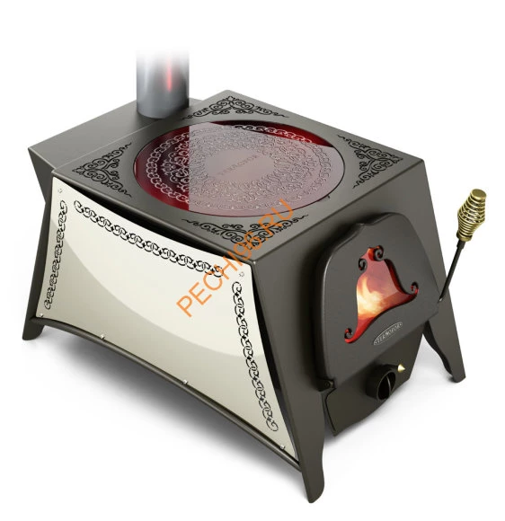 Дровяная отопительно-варочная печь Селенга предназначена для экономичного воздушного отопления жилых помещений объемом до 85 куб. м, а также для приготовления и разогрева пищи. Главной отличительной особенностью печи является оригинальный стильный дизайн, базирующийся на традициях народов Востока.