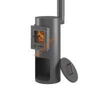 Дверца топки запирается с помощью компактной и практичной ручки. Горение регулируется с помощью подачи воздуха через отверстие, исполняющее роль поддувала, размер которого меняется при выдвижении зольного ящика. Имеется патрубок дымохода, который крепится с помощью болтов к задней стороне корпуса (*труба дымохода в комплект не входит, ее можно приобрести отдельно - Дымоход сборный с зонтиком (HS-GS-D-3) Helios SMART).