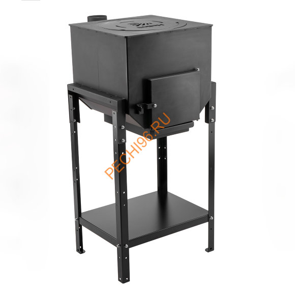 Печь предназначена для приготовления или разогрева еды на открытом воздухе, террасах и площадках под навесом, где имеются системы отвода дыма. Используется как печь под казан или как варочная плита с конфорками. Печь выполнена из стали толщиной (2 мм (корпус) и 5 мм (крыша корпуса, кольцо, конфорка) и окрашена в черный цвет специальной термостойкой кремний-органической краской, ножки и полка покрыты порошковой краской.