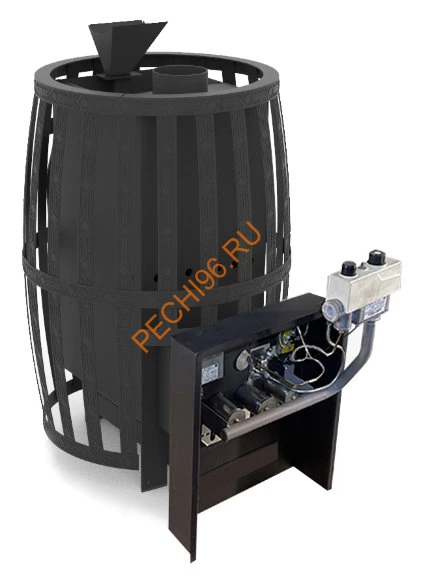 Печь рассчитана на объем парной до 20 м3 . Большая масса камней (200кг) вокруг топки быстро нагревается и аккумулирует тепло в камне. Для нагрева воды опционально устанавливается контур теплообменник в камеру сгорания. ВНИМАНИЕ! ПЕЧЬ ПОСТАВЛЯЕТСЯ В КОМПЛЕКТЕ С ГОРЕЛКОЙ УГ САБК-26. Топка печи изготовлена из стали повышенной прочности марки 09Г2С (ГОСТ 19281-2014) толщиной 6 мм, жаро-приёмная плита 8мм, которая значительно увеличивает срок службы печи.