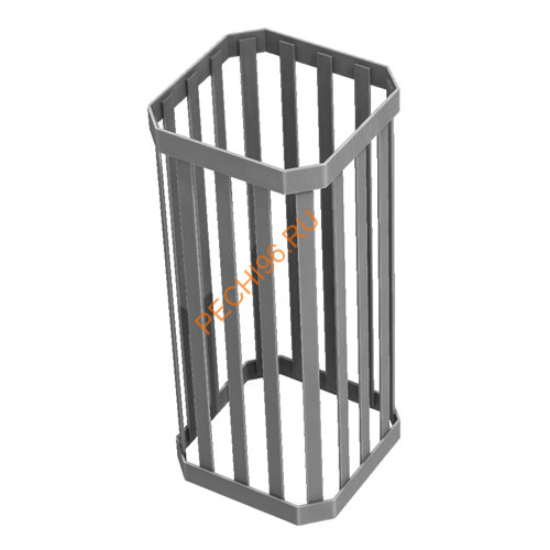 Кованая сетка-каменка для банных печей предназначена для установки вокруг трубы для возможности засыпки камней и экранирования жесткого ИК излучения от нагретого металла. Камни, расположенные в сетке, нагреваются и также участвуют в нагреве воздуха в парной.