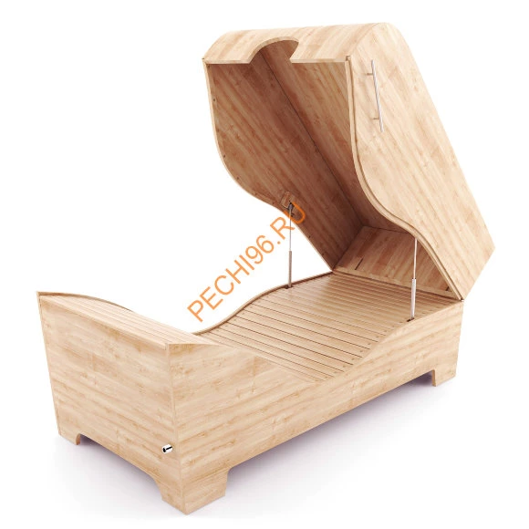 Модель для принятия процедуры лёжа. Разработана для оздоровительных санаториев и пансионатов. Польза фитосауны заключается в комплексном влиянии на организм человека. Воздействуя изнутри, она уничтожает источники болезни, а не их симптомы. Подобный подход эффективнее, чем устранение последствий. При этом он не требует применения дорогостоящих антибиотиков и процедур. Воздух в помещении с кедровой фитобочкой чище за счет фитонцидов. В нем нет грибков и паразитов, способных затруднить процедуру лечения или даже свести его на нет. Подобные мини-сауны или фитобочки, при регулярном применении, дают косметический эффект, благотворно влияя на состояние кожи. Очищение пор придает ей приятный естественный цвет, без нездоровой бледности или покраснения.