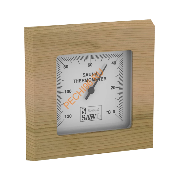 Термометр 223-TD от компании Sawo имеет оригинальную квадратную форму. В широкой рамке из древесины кедра находится большой, круглый, графичный циферблат, который сообщит о температуре воздуха. Циферблат защищён жаропрочным стеклом. Данный прибор прекрасно подойдёт для использования в любом парильном помещении.