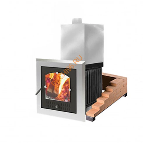 Чугунно-стальной топочный агрегат для бани Сударушка Семейная. Самостоятельно выполнив облицовку из декоративного кирпича или другого подходящего материала, Вы получаете недорогую, эффективную печь с дизайном, в полной мере соответствующим Вашим вкусам. Все детали, необходимые для самостоятельного монтажа облицовки, входят в комплект поставки. Топочный агрегат комплектуется каменкой с верхней загрузкой из жаропрочной коррозионностойкой стали AISI 439 оригинальной конструкции. Конструкция каменки такова, что за счет 100%-го охвата пламенем ее поверхности, прогрев камней осуществляется до высоких температур. Переменная высота съемного тоннеля для каменки позволяет Покупателю самостоятельно определять высоту кирпичной облицовки, изменяя тем самым тепловые характеристики печи и ее внешний вид. По желанию Покупателя топочный агрегат комплектуется «паровой пушкой» - приспособлением, позволяющим получать пар с камней, находящихся в нижней части каменки. Доступная цена, надежность и простота конструкции, удобство и комфорт в использовании делает топочный агрегат «Сударушка Семейная» лучшим выбором для устройства парных помещений объемом 10-18 м3.