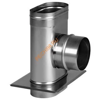 Тройник 90° с опорой и патрубком круглого сечения. Одноконтурная система овального сечения из высоколегированной стали аустенитной нержавеющей стали. Данная дымоотводящая система спроектирована ведущими специалистами завода ВУЛКАН совместно с европейскими партнерами из Германии и Швейцарии на основе многолетнего опыта проектирования, производства, монтажа и эксплуатации. Все элементы и детали системы производятся на самом современном в России оборудовании по технологиям последнего поколения. Тщательный подбор и контроль используемых материалов, а также высокая квалификация персонала позволяют производить продукцию высочайшего качества.
