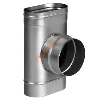 Тройник 90° с патрубком круглого сечения. Одноконтурная система овального сечения из высоколегированной стали аустенитной нержавеющей стали. Данная дымоотводящая система спроектирована ведущими специалистами завода ВУЛКАН совместно с европейскими партнерами из Германии и Швейцарии на основе многолетнего опыта проектирования, производства, монтажа и эксплуатации. Все элементы и детали системы производятся на самом современном в России оборудовании по технологиям последнего поколения. Тщательный подбор и контроль используемых материалов, а также высокая квалификация персонала позволяют производить продукцию высочайшего качества.
