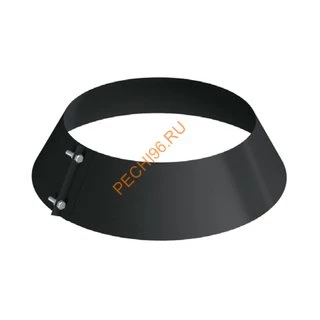 Юбка выполнена из окрашенной в чёрный цвет нержавеющей стали. Юбка для дымохода – это элемент, который крепится на проход дымохода через кровлю. Внешне простой элемент выполняет важную роль. Благодаря своей форме, он предупреждает попадание влаги через стык в кровельном материале в месте прохода дымоходной трубы.